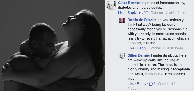 32 people like it. OK, no biggie. But witness the same crowd’s reaction to obesity-themed photography: